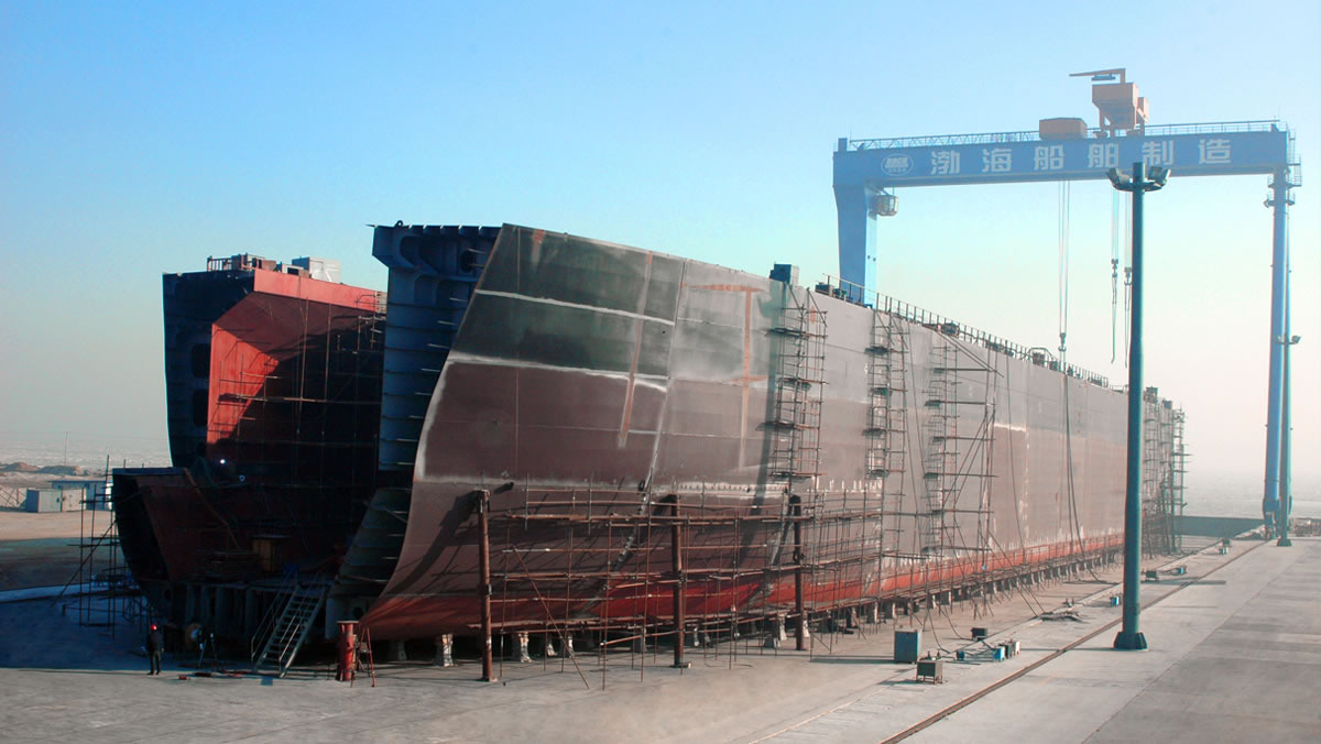 我(wo)廠建造34800噸散(san)貨(huo)船(chuan)